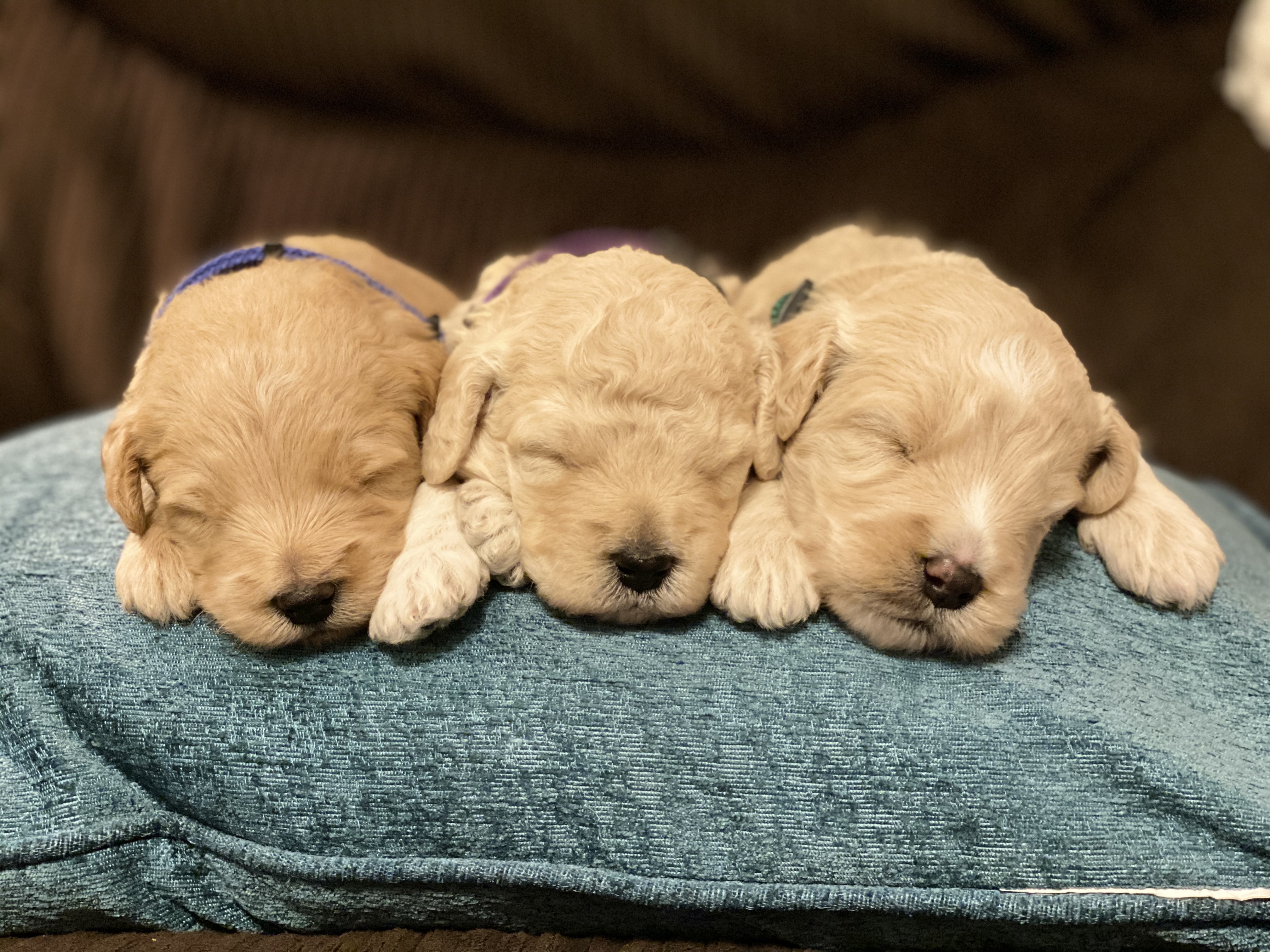 My two oldest kids bought two beautiful English cream female Mini Doodles from a friend and we decided we wanted puppies. We bought an apricot male Golden Doodle and raised them for two years before we had our first litter. We had 8 puppies in that litter and found loving homes for them all. We love to see updates in their new homes and decided raising puppies was for us!
