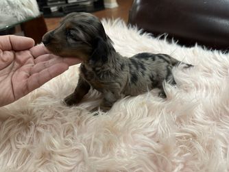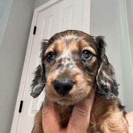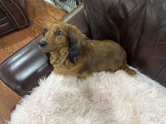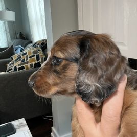Tipsy is very intelligent, trained, extremely affectionate long hared miniature dachshund. She has been bred out of champion bloodlines.