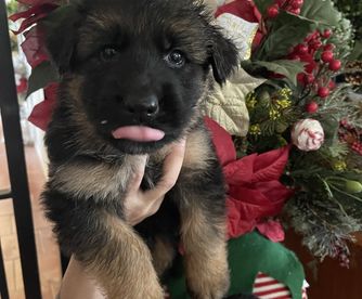 Vaska is a gorgeous black and red one coat female who has never met a stranger. She is everything you want in a German Shepherd and then some. she is gentle with kids, cats other dogs, and we adore her. She will have her OFA certification. She is not two years old until end of July 2025.