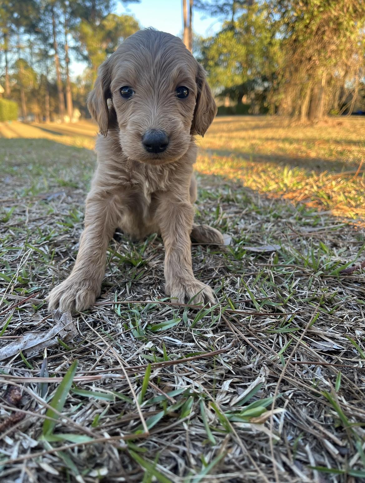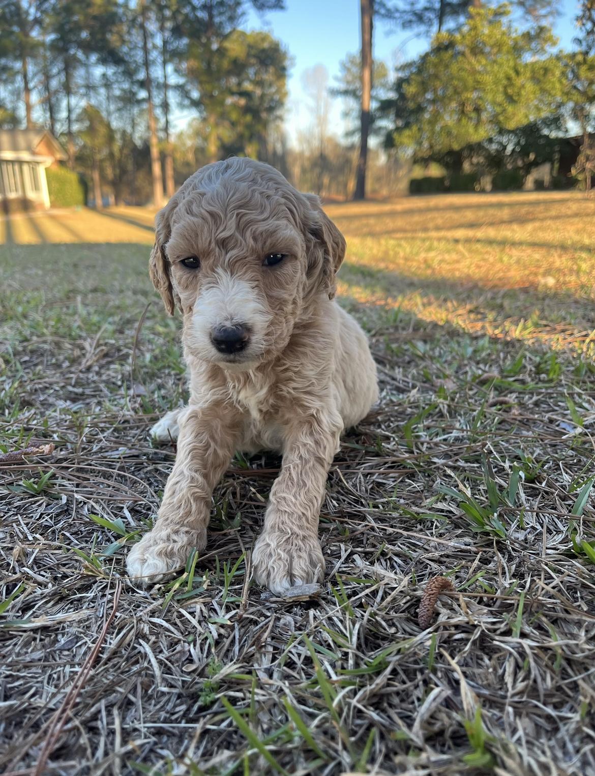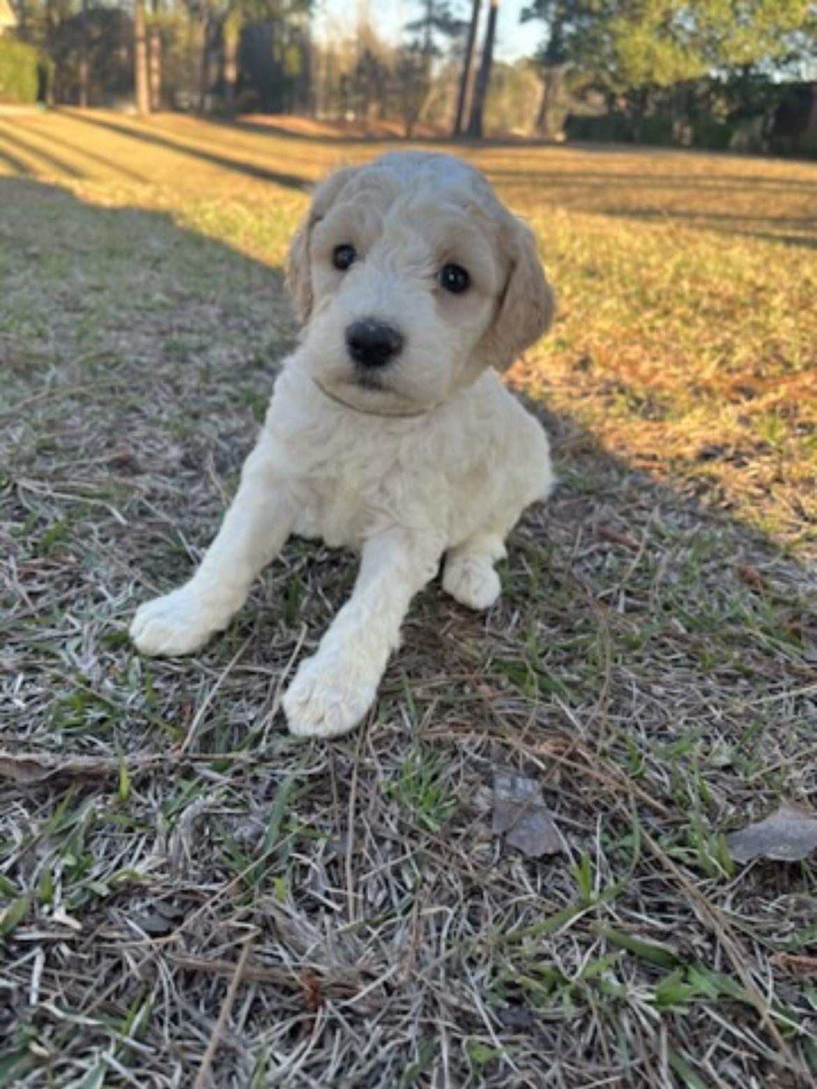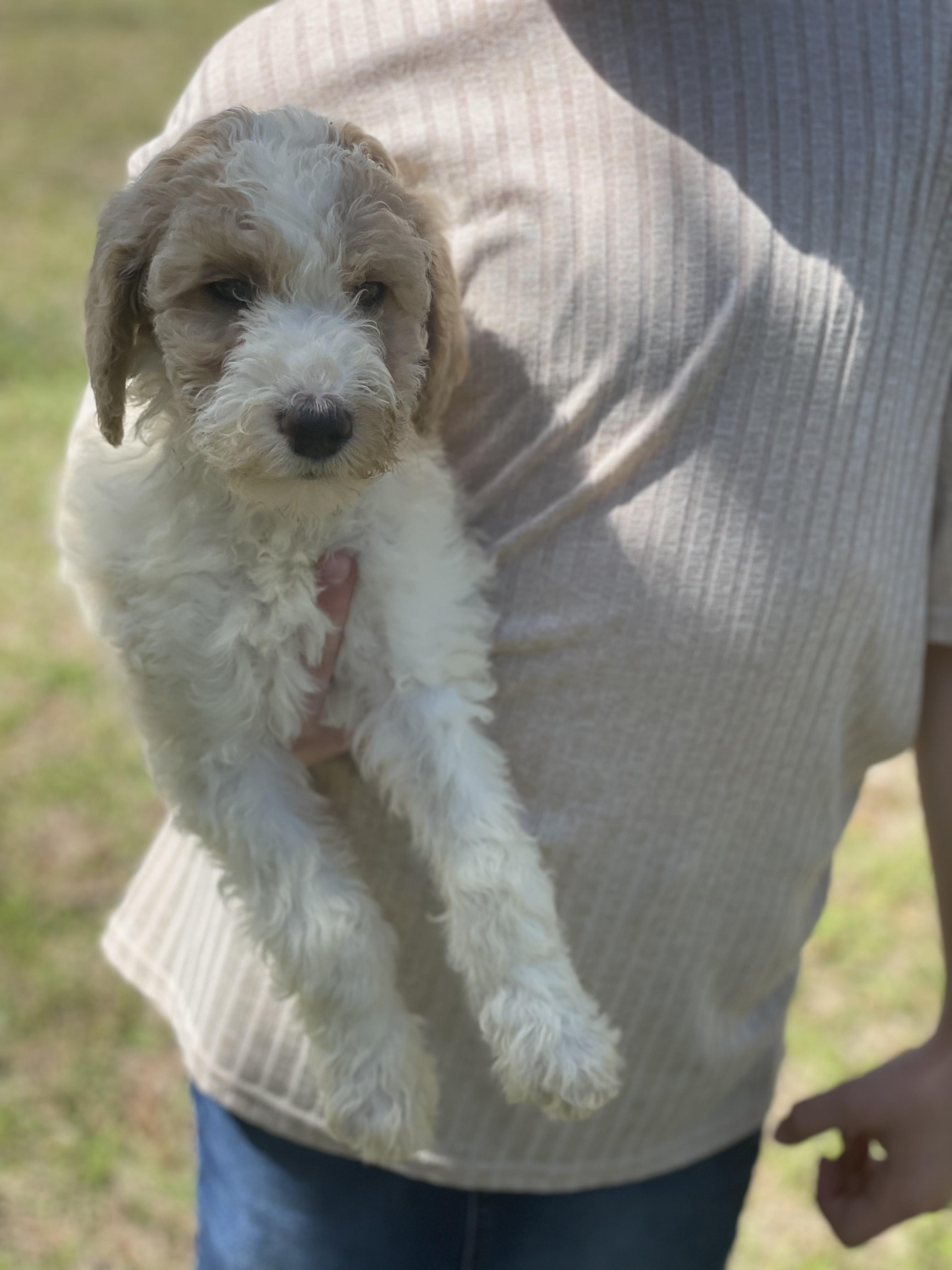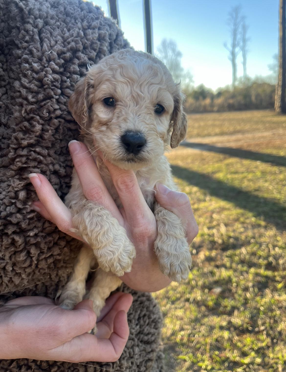 Our Poodle puppies are apricot. Goldendoodle puppies include cream, apricot, and parti. Colors will vary depending on the parent dogs.