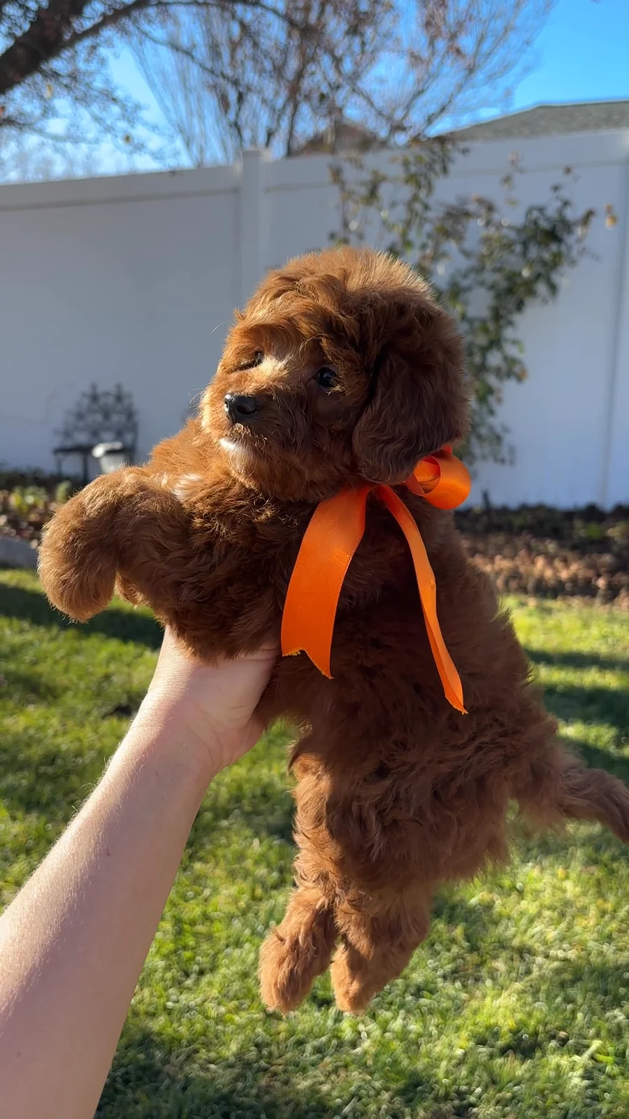 Our Bernedoodle puppies include brown, tri-color, phantom, blue merle, and merle. Cavapoo puppies include merle, black and tan, white, red, blenheim, and apricot. Goldendoodle puppies include cream, apricot, red, and parti. Poodle puppies include apricot, red, parti, and phantom. Colors will vary depending on the parent dogs.