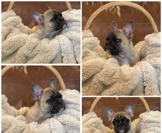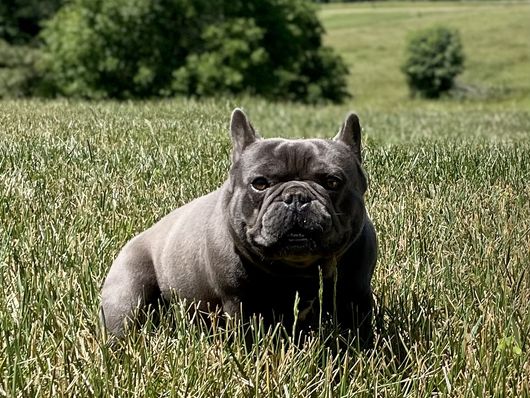 Evie is a blue and tan female French Bulldog who also lives inside with our family as a pet (as do all of our dogs). We keep a very small number of breeding dogs at any given time so each can live inside as pets and get the attention and companionship they deserve! Evie is very protective of her family, but also open to meeting new people and loves to go places! She is the epitome of a couch potato, and as long as you'll stay put, so will she! Evie comes from a line of proven health and longevity in frenchies and we feel pairing her with Bentley will give all our pet buyers a very high quality frenchie at an affordable pet price.