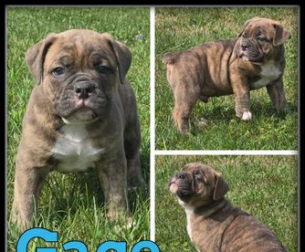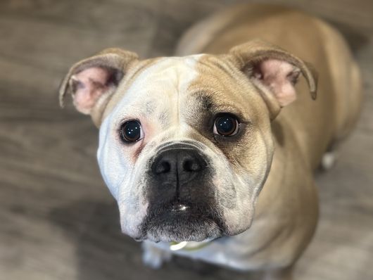 Pancake is a female Olde English Bulldogge. Carefully selected as a great representative of her breed, Jaime decided to make her part of their program. Jaime has passed Good Dog’s screening process, which involved a review of their breeding practices, environment, and the mental and physical health of their dogs.