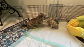 Puppy prices include a $500 non-refundable deposit and between $500 - $2,000 final payment, before taxes & fees.