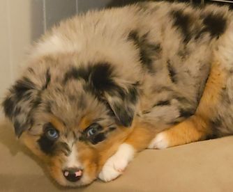 Our puppies include red merle, blue merle, black tri-color, and red tri-color. Colors will vary depending on the parent dogs.
