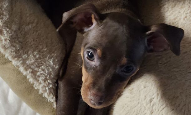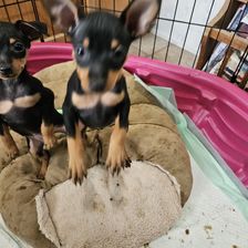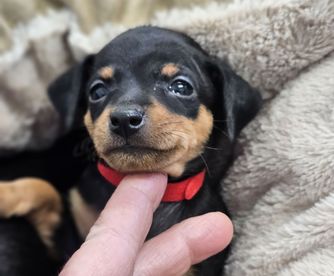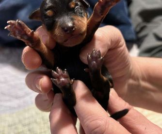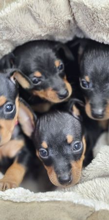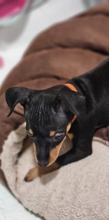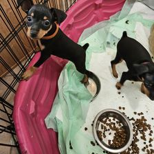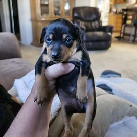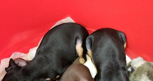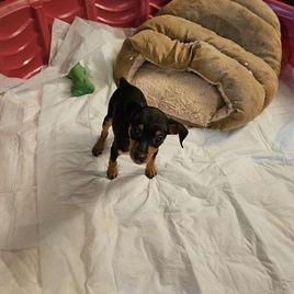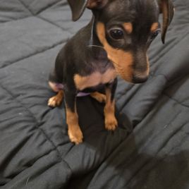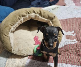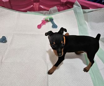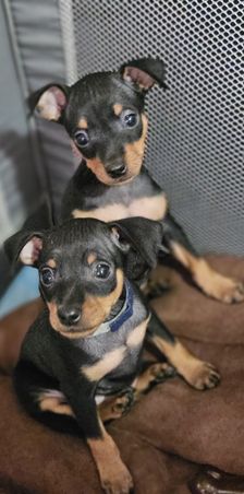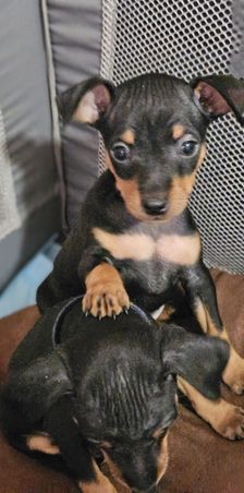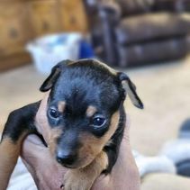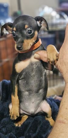 Our Miniature Pinscher puppies include chocolate and tan and black and tan. Colors will vary depending on the parent dogs.
