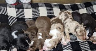 Our puppies include blue merle and red merle. Colors will vary depending on the parent dogs.