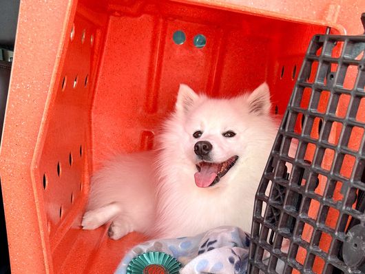 Breaker is a male American Eskimo Dog. Carefully selected as a great representative of his breed, Morgan decided to make him part of their program. Morgan has passed Good Dog’s screening process, which involved a review of their breeding practices, environment, and the mental and physical health of their dogs.