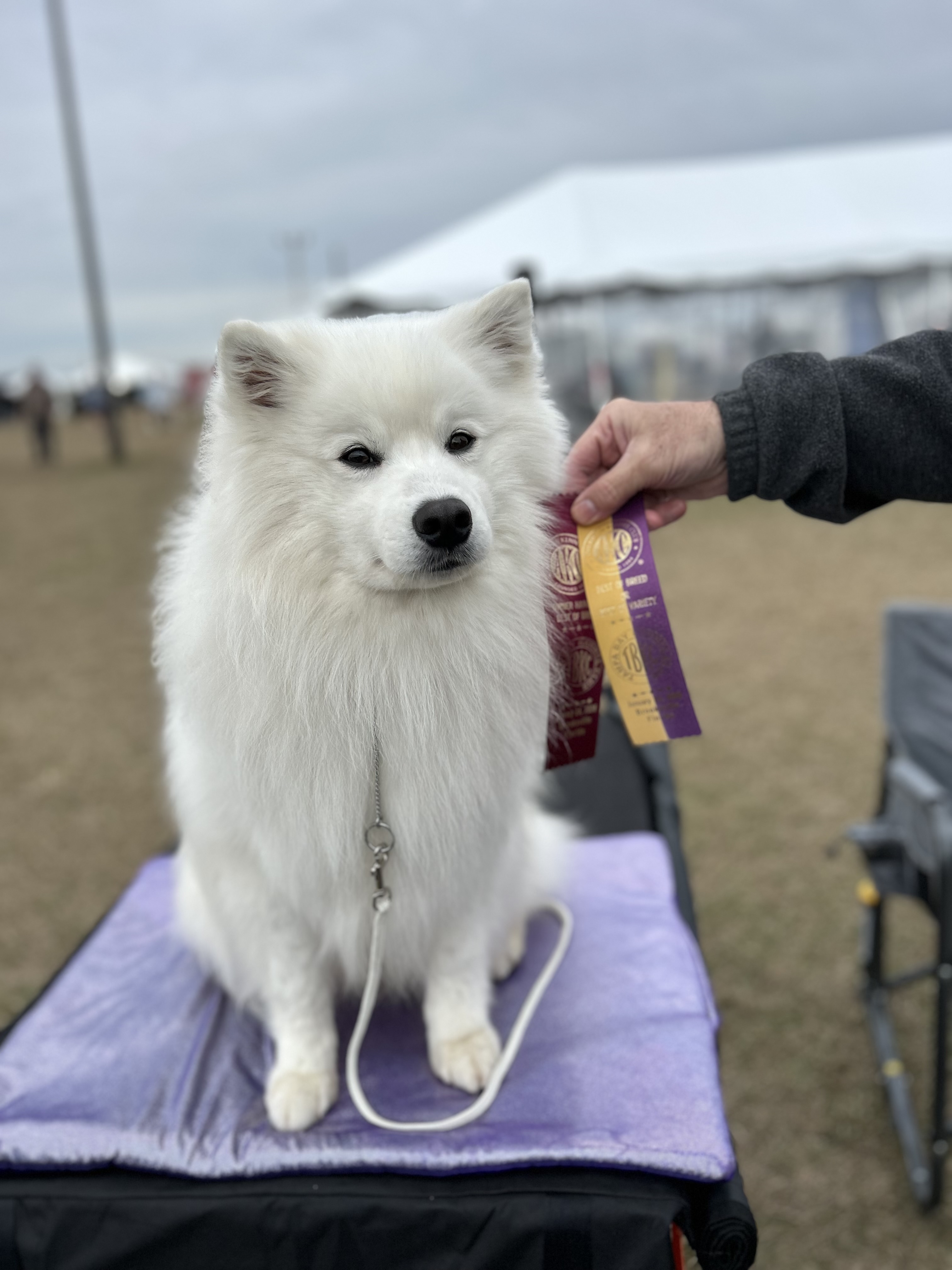 I'm Morgan P., the breeder behind Halfmoon Kennel located in Chuluota, FL. My dad and I are both American Eskimo dog fanciers. We want to produce dogs that are as close to the American Eskimo Dog breed standard as possible, both physically and temperamentally. We hope you enjoy them as much as we do.