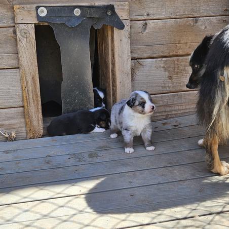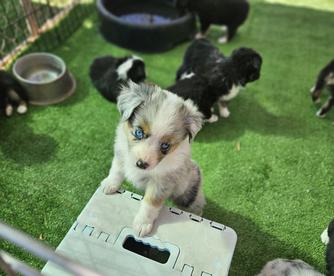 Our Miniature Australian Shepherd puppies include blue merle, black tri, red tri, and red merle. Toy Australian Shepherd puppies include black tri, blue merle, red merle, and red tri. Colors will vary depending on the parent dogs.