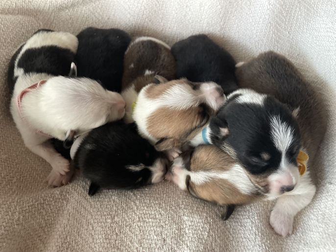 I'm Carolyn H., the breeder behind Hallin’ Corgis located in Rosharon, TX. We produce well-bred, AKC Pembroke Welsh Corgis from champion lines. We take great pride in our dogs and their puppies! Our Corgis are born and raised in our home. They start being kennel trained when they are weaned.
