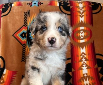 Our puppies include red merle, blue merle, black tri-color, and red tri-color. Colors will vary depending on the parent dogs.