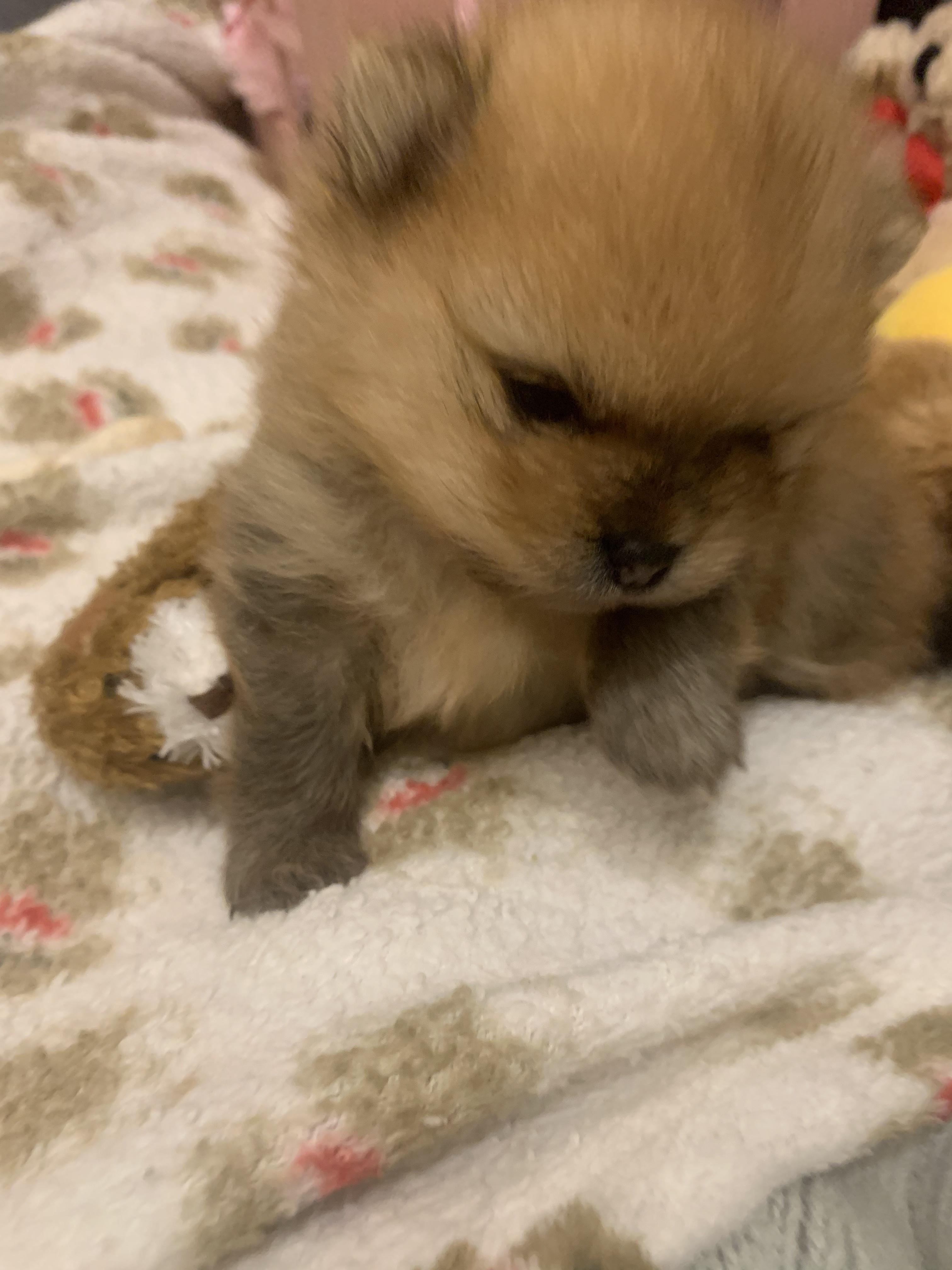 Elle is a female Pomeranian. Carefully selected as a great representative of her breed, Haley M. decided to make her part of their program. Haley M. has passed Good Dog’s screening process, which involved a review of their breeding practices, environment, and the mental and physical health of their dogs.