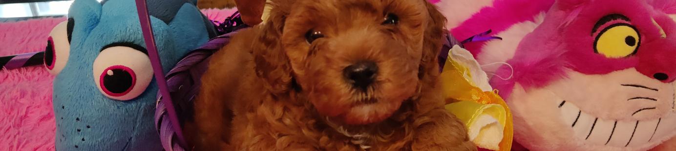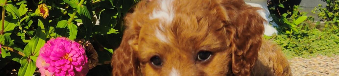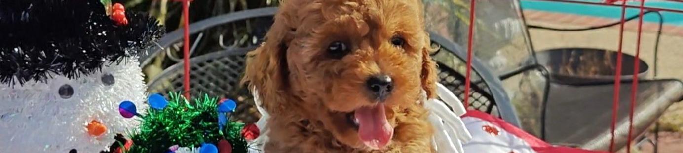Our Cavapoo puppies include cream, white, red, and apricot. Goldendoodle puppies include cream, apricot, red, and chocolate. Poodle puppies include apricot, cream, red, and white. Colors will vary depending on the parent dogs.