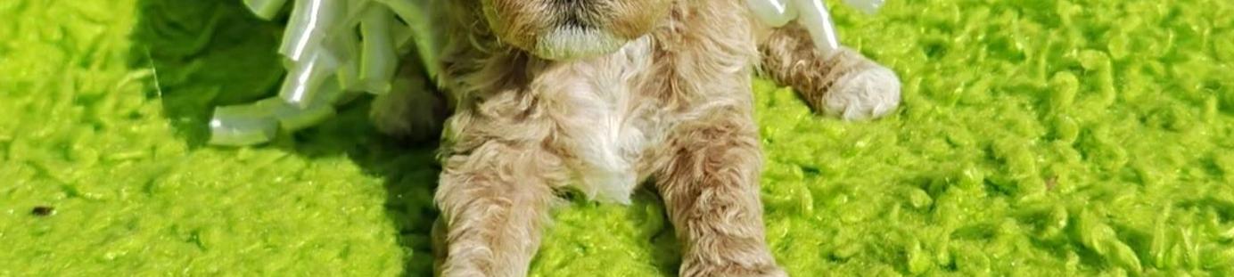 Step into the spotlight and meet Teddy, the canine star with a flair for the dramatic and a heart full of charm. This pint-sized Cavapoo, a unique blend of Cavalier King Charles Spaniel and Toy Poodle, commands the stage with his curly, wavy cream coat and that trademark tuft of hair on his head that’s as captivating as a spotlight on a Broadway star.