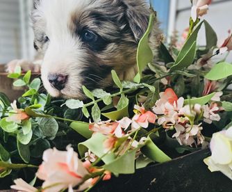 Sara was quick to respond to me from day one! I had a lot of questions and she always responded quickly. I found her puppies the day that were listed and picked my “Pepper” out immediately. Sara provided so may pictures and videos throughout the whole waiting process. It was fun to watch Pepper grow from looking like a guinea pig, cutest guinea pig ever, to the most adorable puppy ever at 8 weeks. I feel like I was there from day one. She sent picture and videos of puppy playtime and bath time as well. This puppy has the best temperament. I’ve only had her for 5 days, but she has been to a doctor’s appointment and was the talk of the entire building. People came from all around to see her and pet her. She might have a therapy dog title in her future. She is so pretty. That’s all I hear wherever I go. She loves every dog she has seen so far, big or small. That goes for people too. I would recommend Sara Hamilton Farms to anyone and everyone that is looking for a nice puppy/dog. We couldn’t be happier with our beautiful Australian Shepherd puppy! Denise Ratino