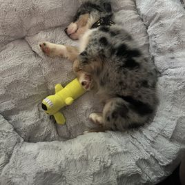 We LOVE our new puppy, Cleo! We could not be happier with the process of buying her, too. Sara sent so many updates and photos throughout the process and was so quick to respond when I had a question! We would absolutely buy an Aussie from her again in the future :)