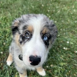 Our puppies include red merle, blue merle, black tri-color, and red tri-color. Colors will vary depending on the parent dogs.
