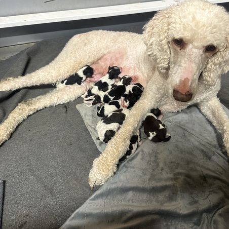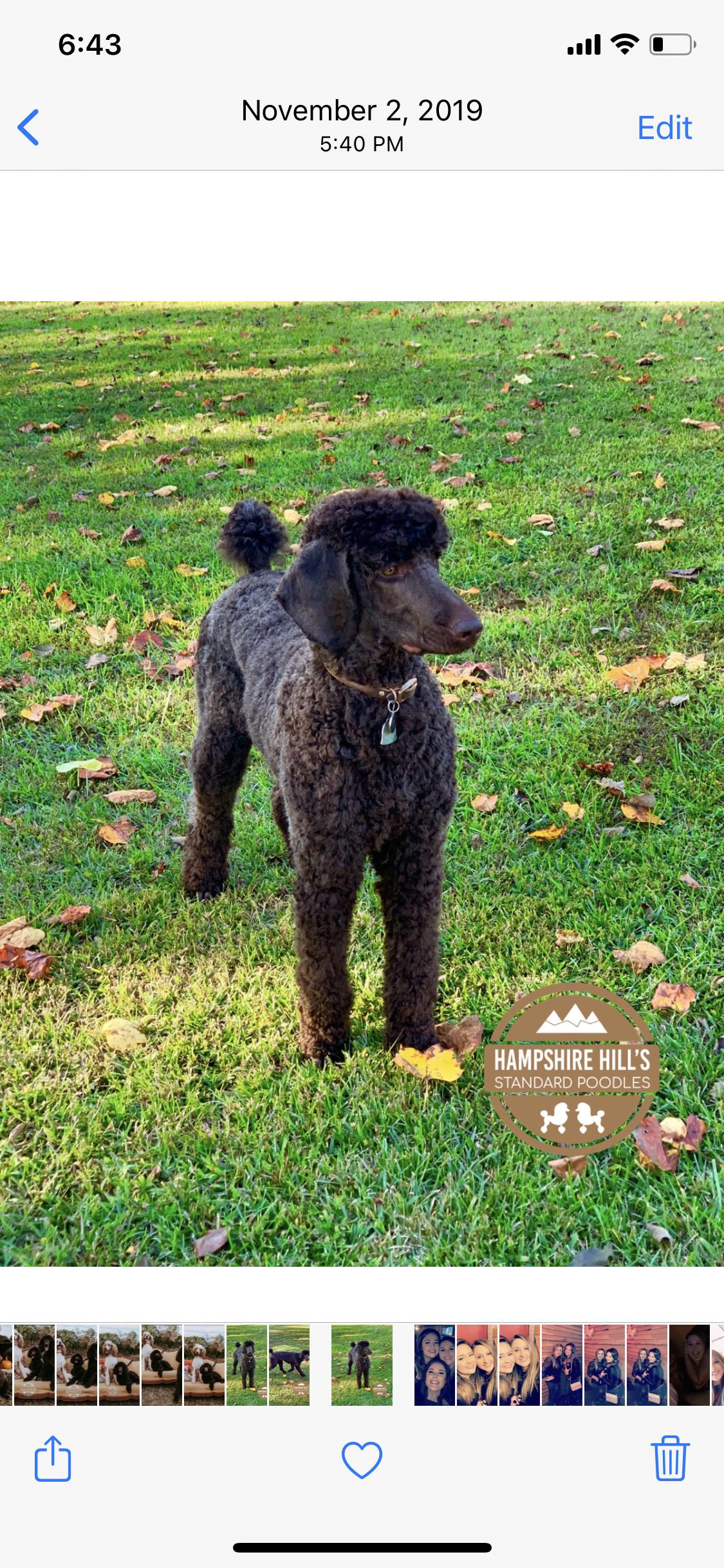 I'm Ashley E., the breeder behind Hampshire Hill’s Standard Poodles located in Travelers Rest, SC. Hampshire Hills specializes in breeding a perfect mixture of intelligence and caring demeanor. Our dogs receive all the dedication and preparation to become a perfect therapy dog or a gentle, loving companion. Hampshire Hill’s Standard Poodles strive to perform excellence in everything we do. Our dogs are genetically health tested, clear through, “Animal Genetics” or “Paw Prints” Genetics, elbow, and Patellas through the Orthopedic Foundation Of Animals (OFA).