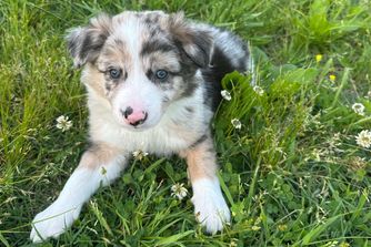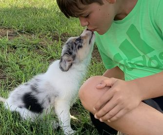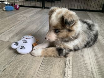 Our puppies include tri-color, blue merle, red merle, and red. Colors will vary depending on the parent dogs.