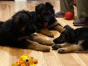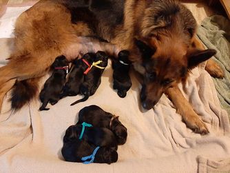 I breed for a medium drive dog to fit in the family. Most of my breeding stock are therapy dogs. Naturally reared means that our dogs and their puppies are raised on a species-appropriate diet of raw meat, raw bones, and raw organs.