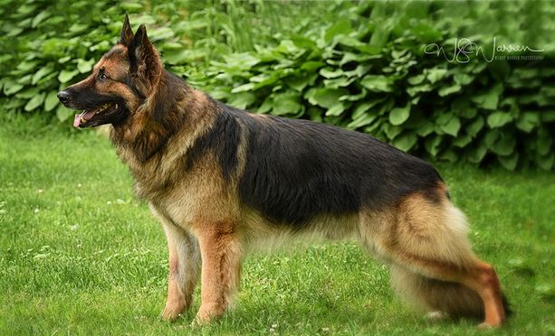 I'm Judy L., the breeder behind Hanabrit German Shepherds located in Highland, MI. There is a passion to our breeding program here, to preserve the old, pure bloodlines. I've continued to research the GSD bloodlines and strive to breed for the big, bold and beautiful look, with sound mind and body. The German Shepherd dog fits right in with the family environment—that is why my husband and I love them.