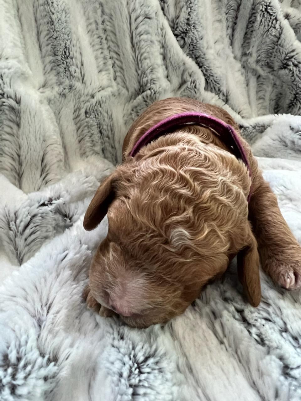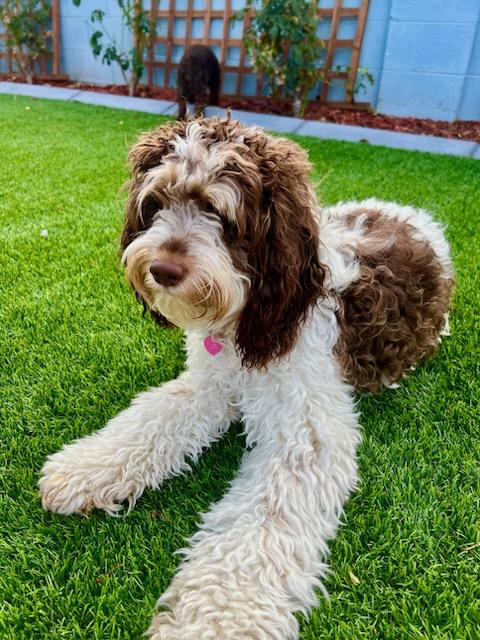 Molly is a female Cockapoo. Carefully selected as a great representative of her breed, Kristin decided to make her part of their program. Kristin has passed Good Dog’s screening process, which involved a review of their breeding practices, environment, and the mental and physical health of their dogs.