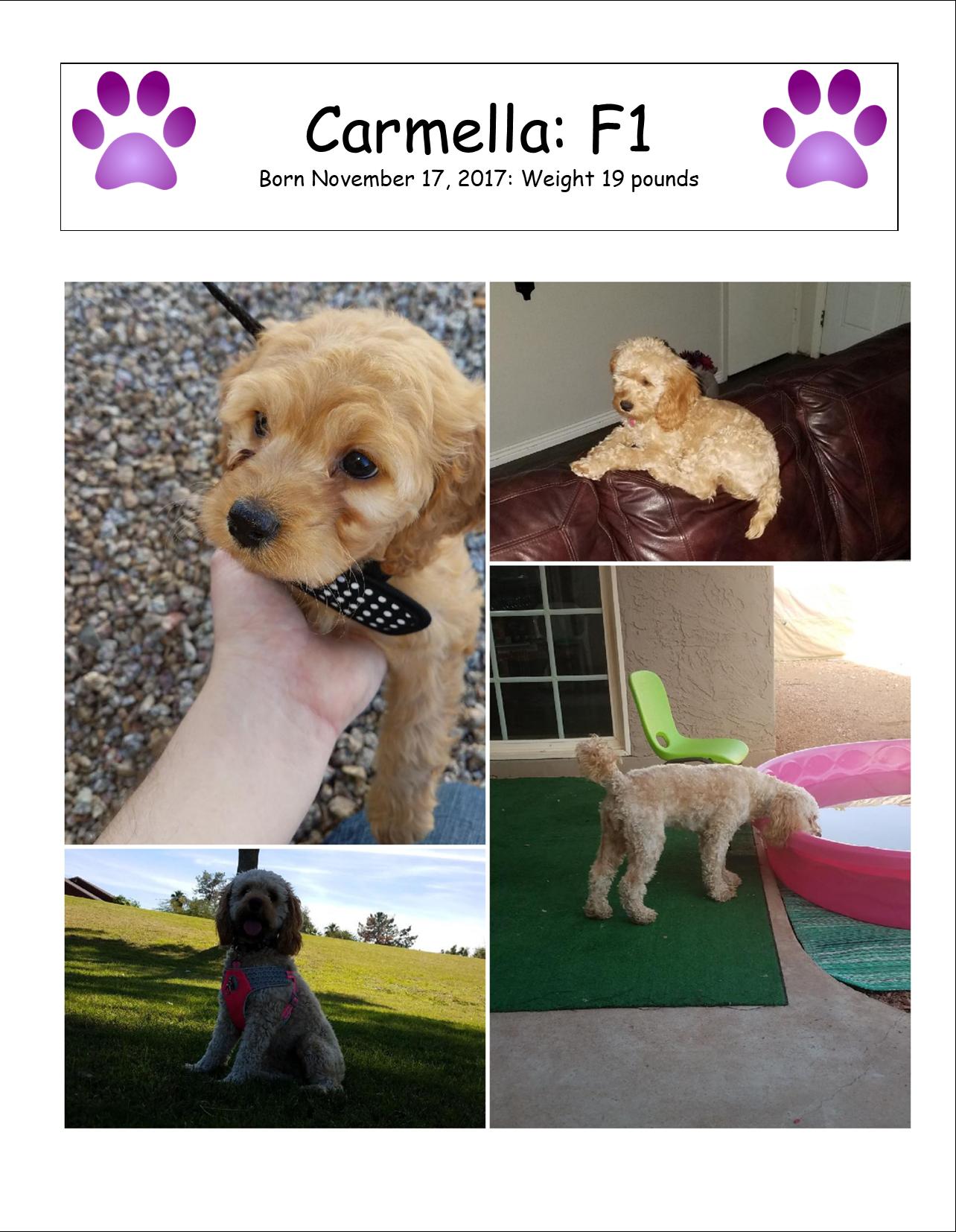 Carmella is a female Cockapoo. Carefully selected as a great representative of her breed, Kristin decided to make her part of their program. Kristin has passed Good Dog’s screening process, which involved a review of their breeding practices, environment, and the mental and physical health of their dogs.