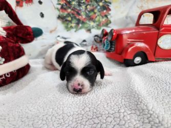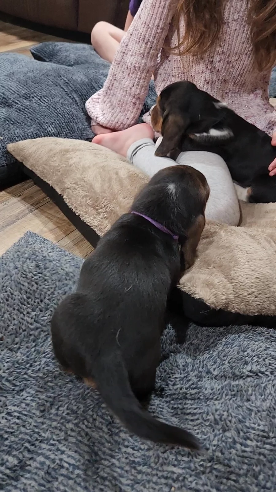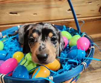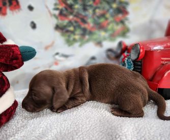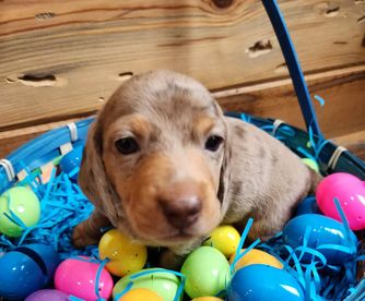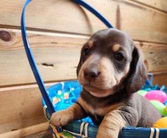 Dachshund puppies include smooth and longhaired coat varieties. Coat types may vary depending on the parent dogs.