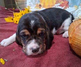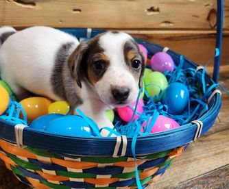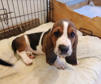 Our Basset Hound puppies are black brown and white. Dachshund puppies include piebald, black, chocolate, black and tan, chocolate and cream, black and cream, and dapple. Colors will vary depending on the parent dogs.