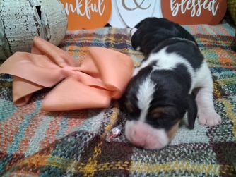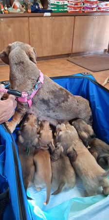 All my dogs are part of our family. I keep all my dog inside my home. They've all got safe fenced in areas to run and play. Mom and babies have their own room. I spend time loving on the puppies daily and whenever the get around 5 weeks I let them explore my home while mom is outside. I introduce them to my other dogs, and my grandchildren. With them living in my home they're use to different sounds and noises of every day life. I start introducing puppy pads training to them around 4 weeks. My prayer is for my puppies to find forever homes full of all the love that they receive in my care.