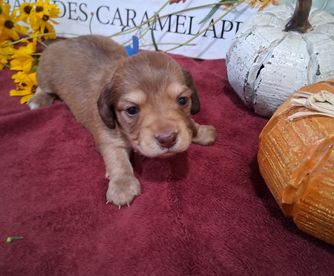 Dachshund puppies are miniature size. Sizes will vary depending on the parent dogs.
