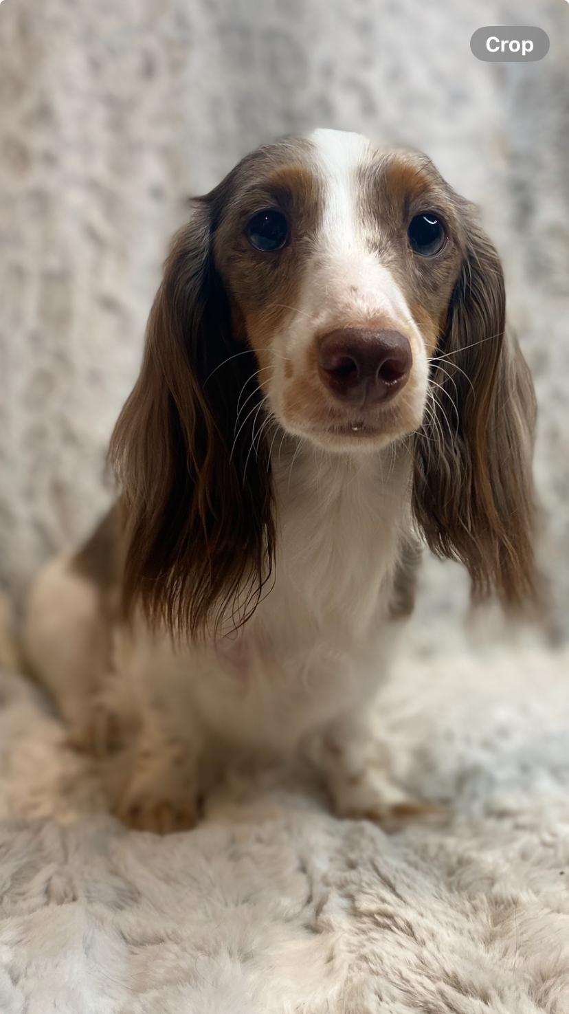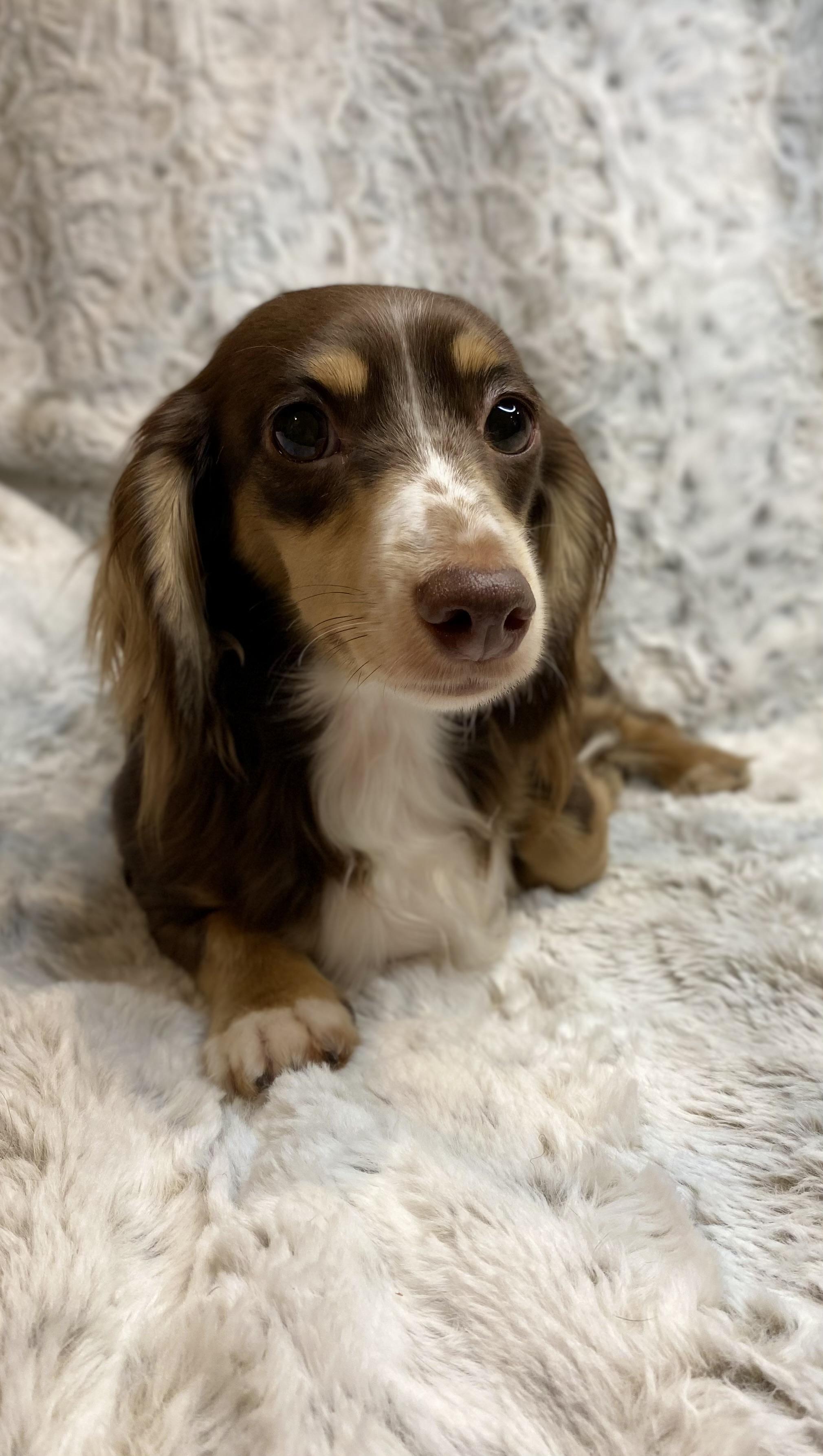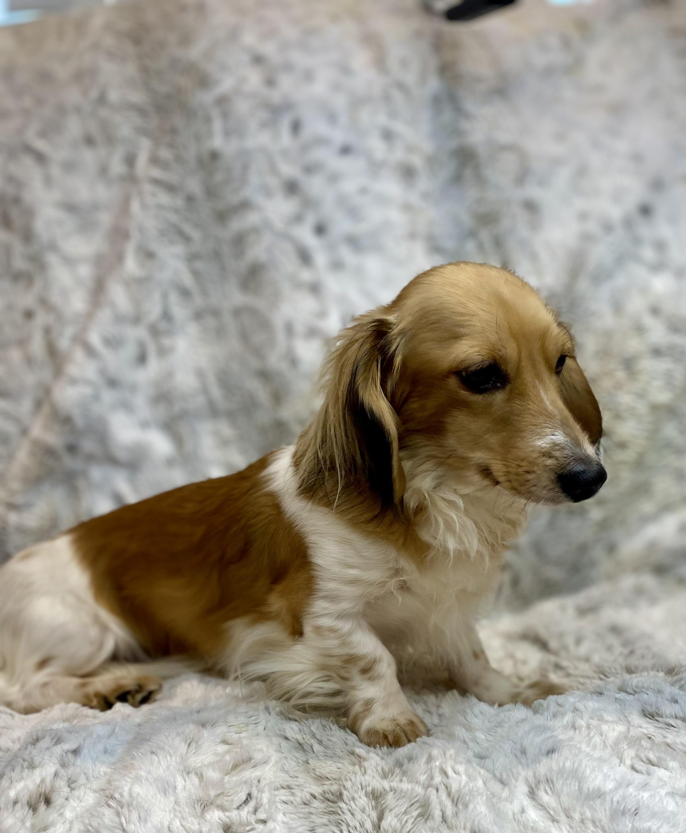 Maple is a female Dachshund. Carefully selected as a great representative of her breed, Janice decided to make her part of their program. Janice has passed Good Dog’s screening process, which involved a review of their breeding practices, environment, and the mental and physical health of their dogs.
