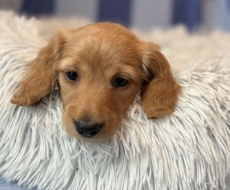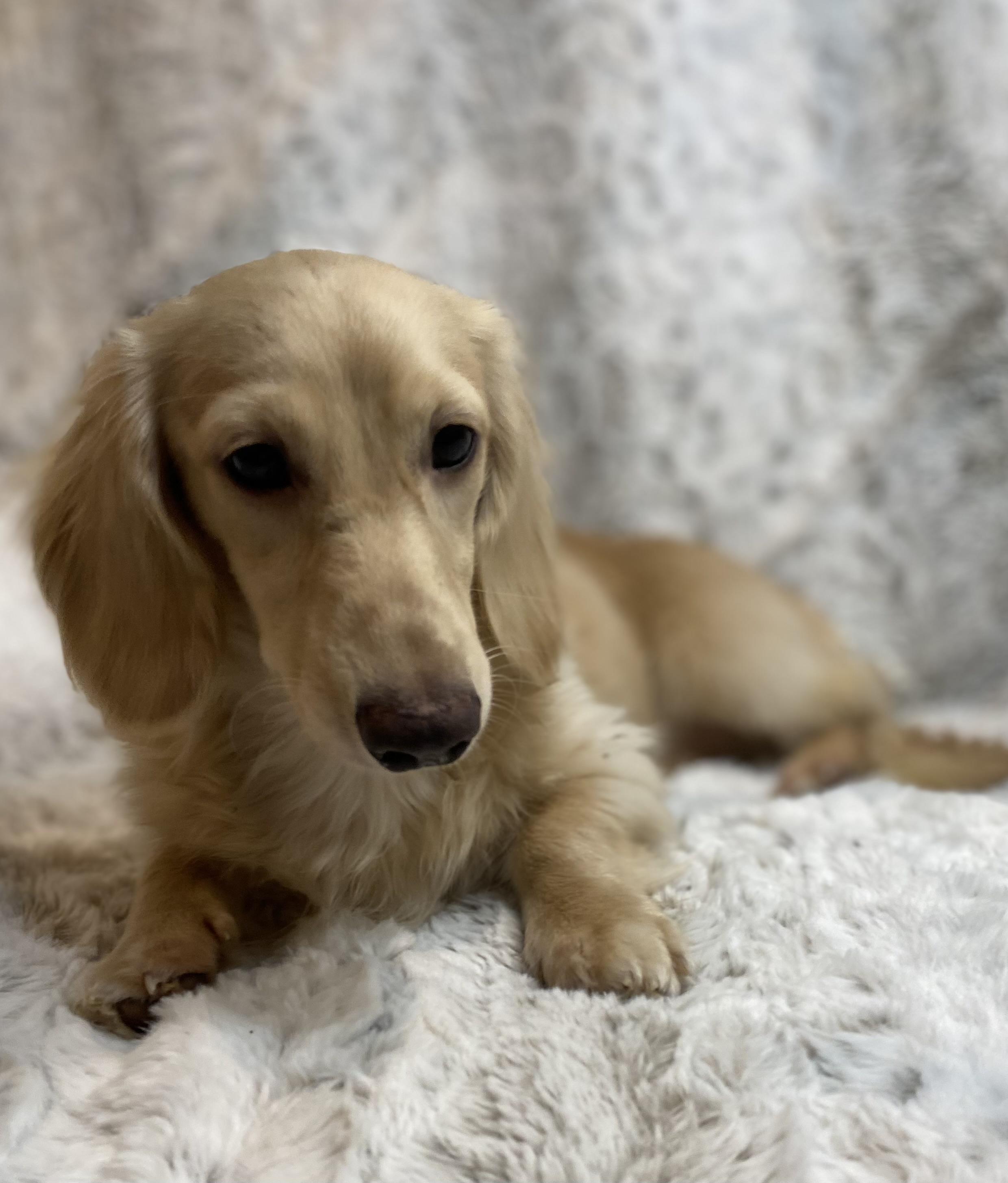 Poe is a male Dachshund. Carefully selected as a great representative of his breed, Janice decided to make him part of their program. Janice has passed Good Dog’s screening process, which involved a review of their breeding practices, environment, and the mental and physical health of their dogs.