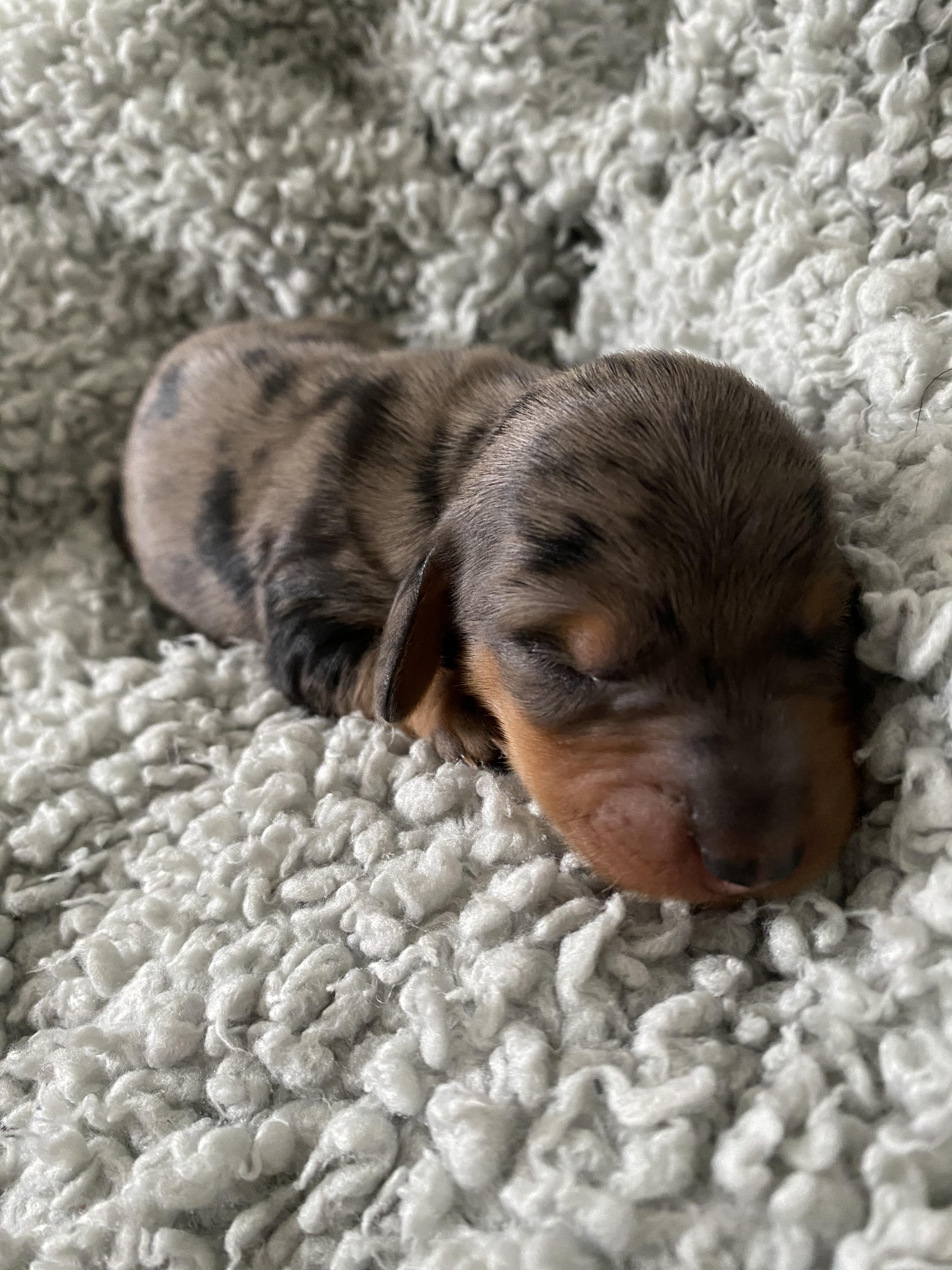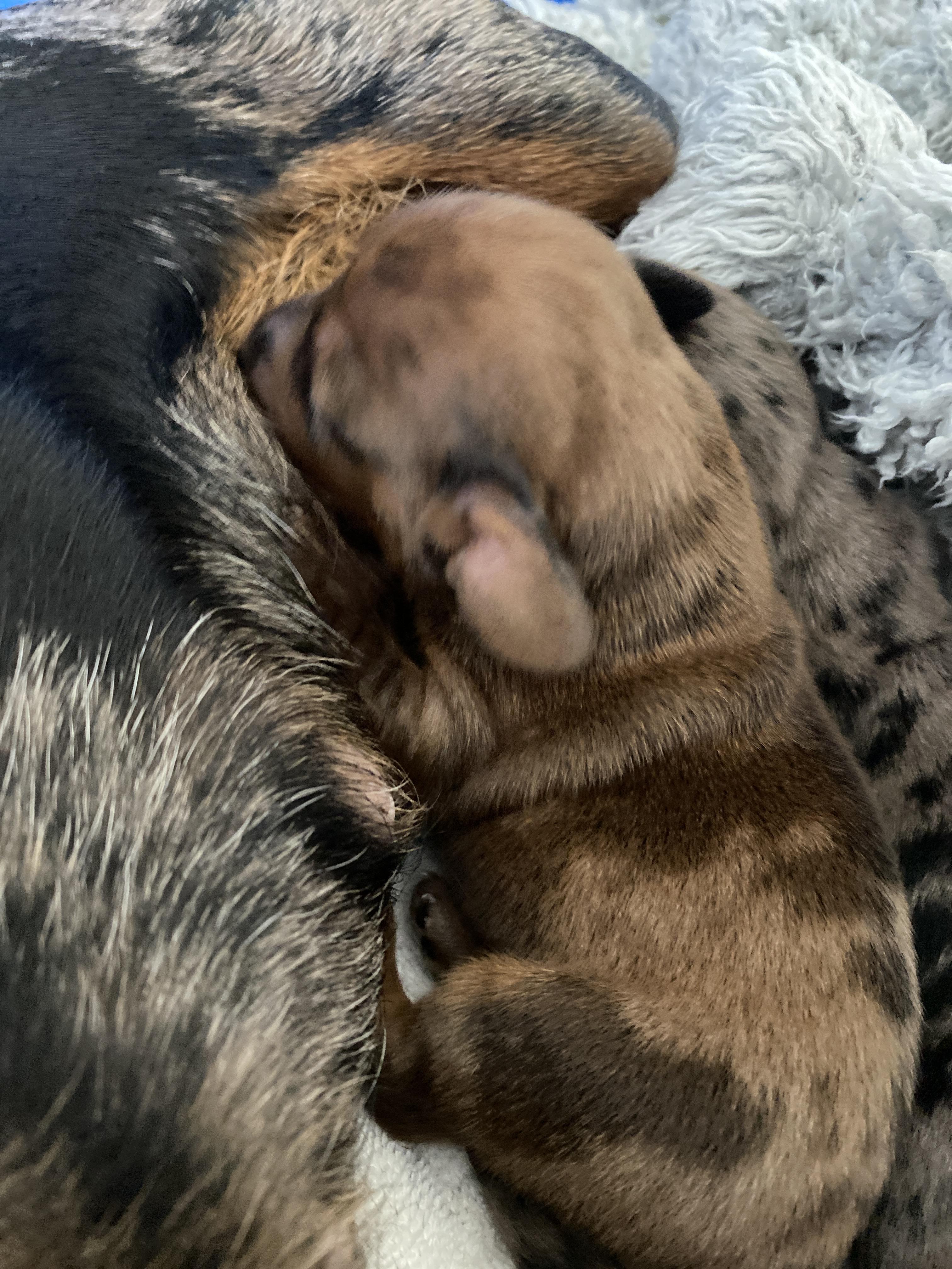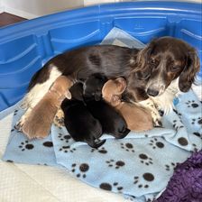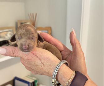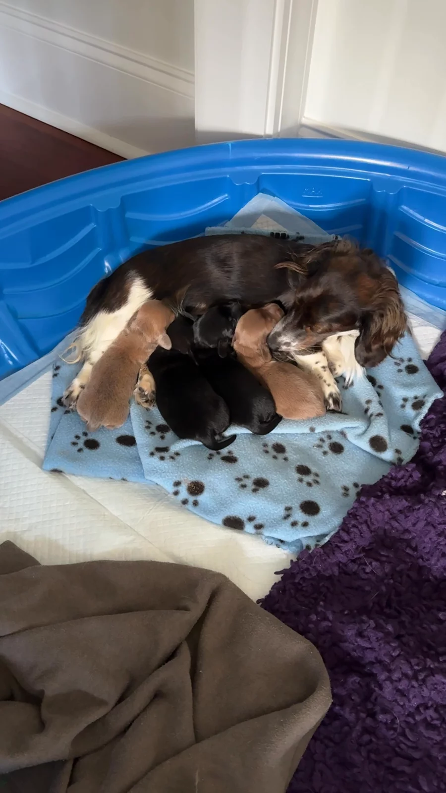 I first thought about breeding after I lost my dachshund Mitzi. Months later, I decided to get a female, then a male and the rest is history. I had my first litter in April 2023 and love what I do! I get to love these babies and prepare them for their new families. It's a lot of work but so fulfilling