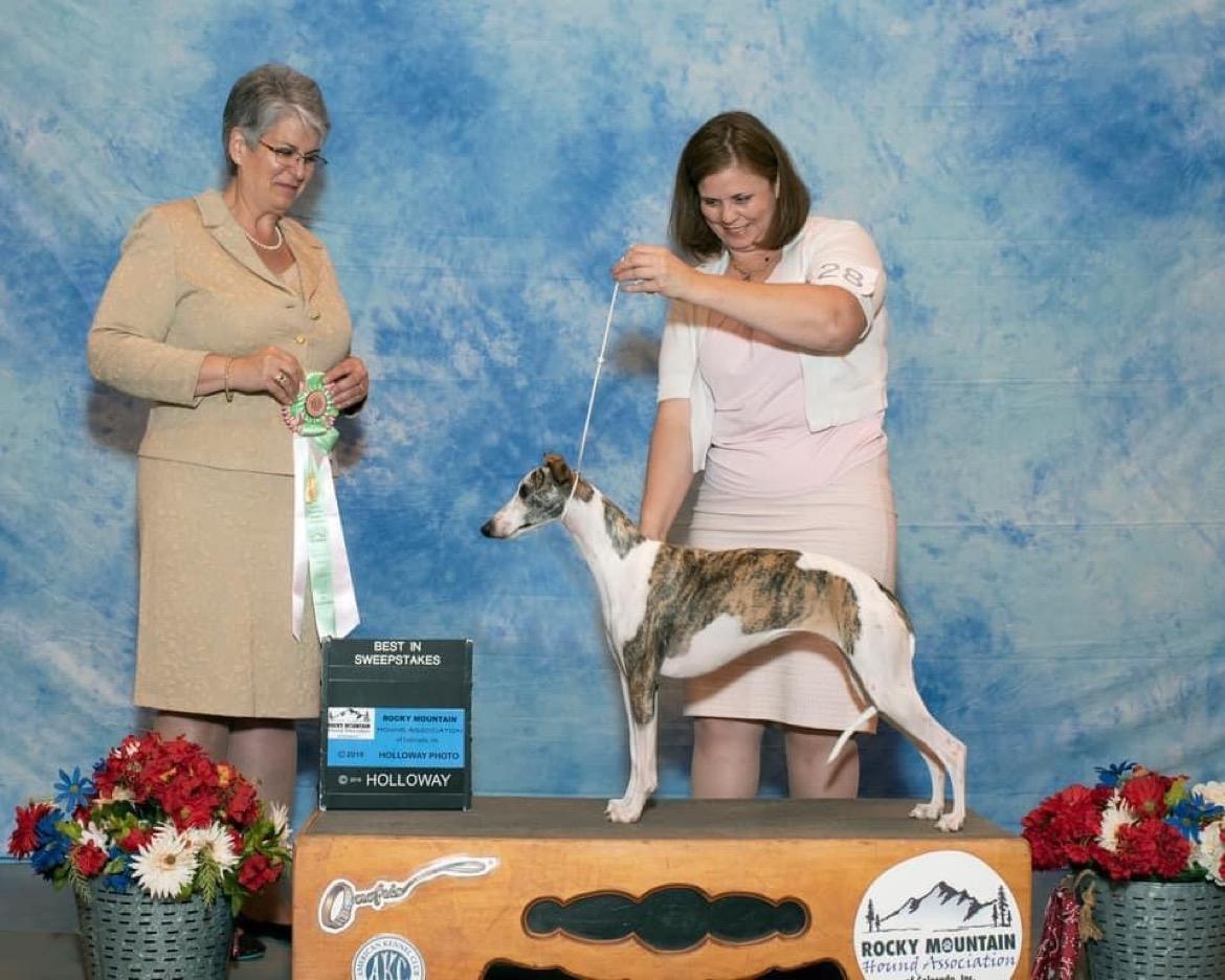 Maddie is a female Whippet. Carefully selected as a great representative of her breed, Kristy decided to make her part of their program. Kristy has passed Good Dog’s screening process, which involved a review of their breeding practices, environment, and the mental and physical health of their dogs.
