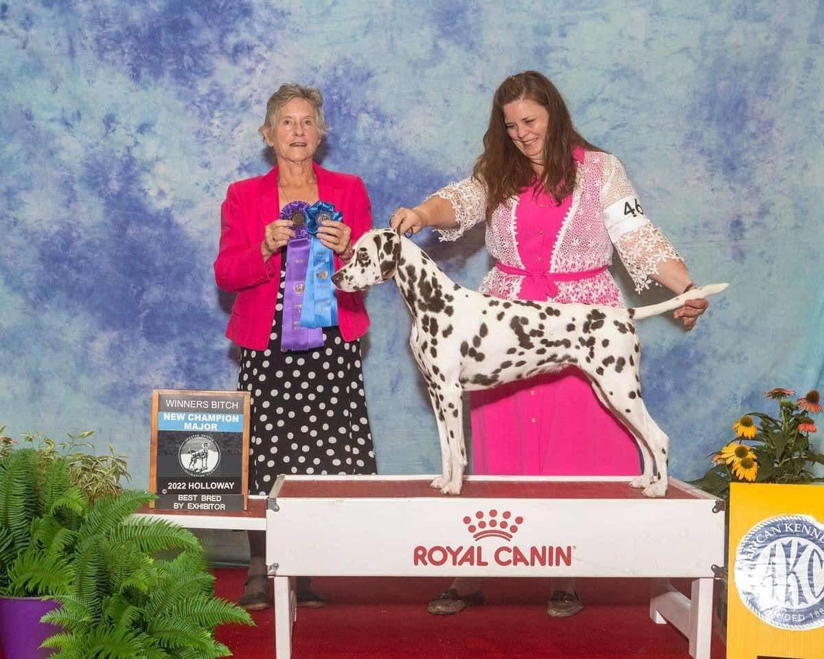 Periwinkle is a female Dalmatian. Carefully selected as a great representative of her breed, Kristy decided to make her part of their program. Kristy has passed Good Dog’s screening process, which involved a review of their breeding practices, environment, and the mental and physical health of their dogs.