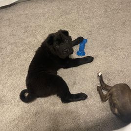 Cognac is a male Chinese Shar-Pei. Carefully selected as a great representative of his breed, Cynthia decided to make him part of their program. Cynthia has passed Good Dog’s screening process, which involved a review of their breeding practices, environment, and the mental and physical health of their dogs.