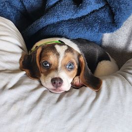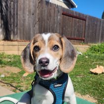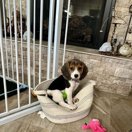 Susan's early work with my beagle puppy is obvious! She is great about having her nails trimmed and gentle taking treats. She was very good for her first vet visit and travels well in the car. This puppy is off to a great start! And she is beautiful :-)