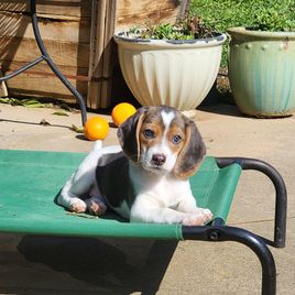 Juneau is a female Beagle. Carefully selected as a great representative of her breed, Susan decided to make her part of their program. Susan has passed Good Dog’s screening process, which involved a review of their breeding practices, environment, and the mental and physical health of their dogs.
