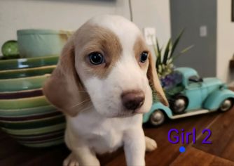 Our Beagle puppies include blue and white and black tan and white. Maltese puppies are white. Poodle puppies include apricot and black. Colors will vary depending on the parent dogs.