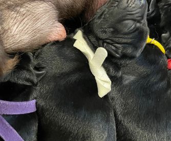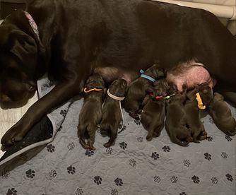Our Labrador Retriever puppies include black, chocolate, and yellow. Assorted Doodle Crosses puppies include black and tan, black phantom, and black tri-color. Colors will vary depending on the parent dogs.