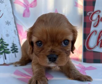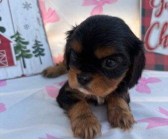 Our puppies include blenheim, ruby, black and tan, and tri-color. Colors will vary depending on the parent dogs.