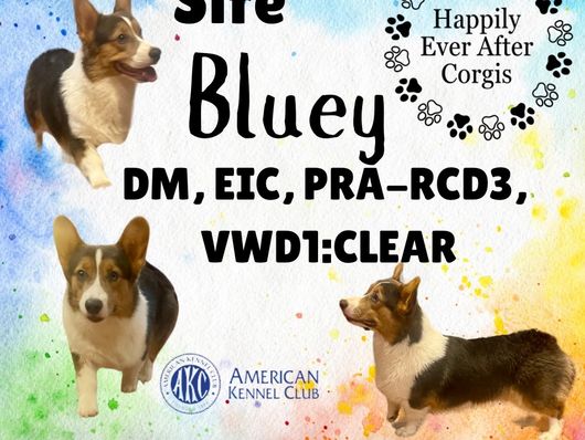 Bluey is a strikingly handsome stud. His sturdy, well proportioned build showcases his strong lineage and impeccable health. Known for his excellent temperament, he is gentle, intelligent, and eager to please traits that make him an exceptional sire. His playful spirit, combined with his loyal and protective nature, ensures that he passes on not only his good looks but also his remarkable personality to his offspring.