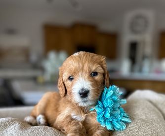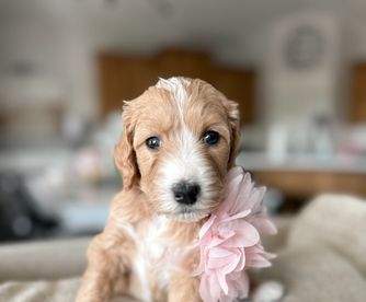 Reeses is a female Goldendoodle. Carefully selected as a great representative of her breed, Angela decided to make her part of their program. Angela has passed Good Dog’s screening process, which involved a review of their breeding practices, environment, and the mental and physical health of their dogs.