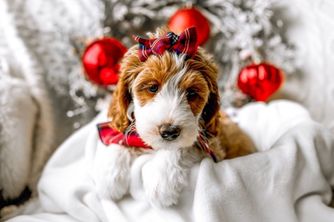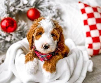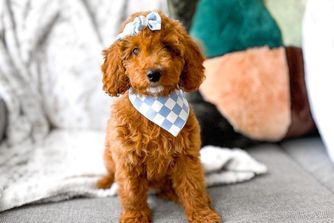 Our Goldendoodle puppies include petite, miniature, and medium sizes. Bernedoodle puppies are mini size. Sizes will vary depending on the parent dogs.