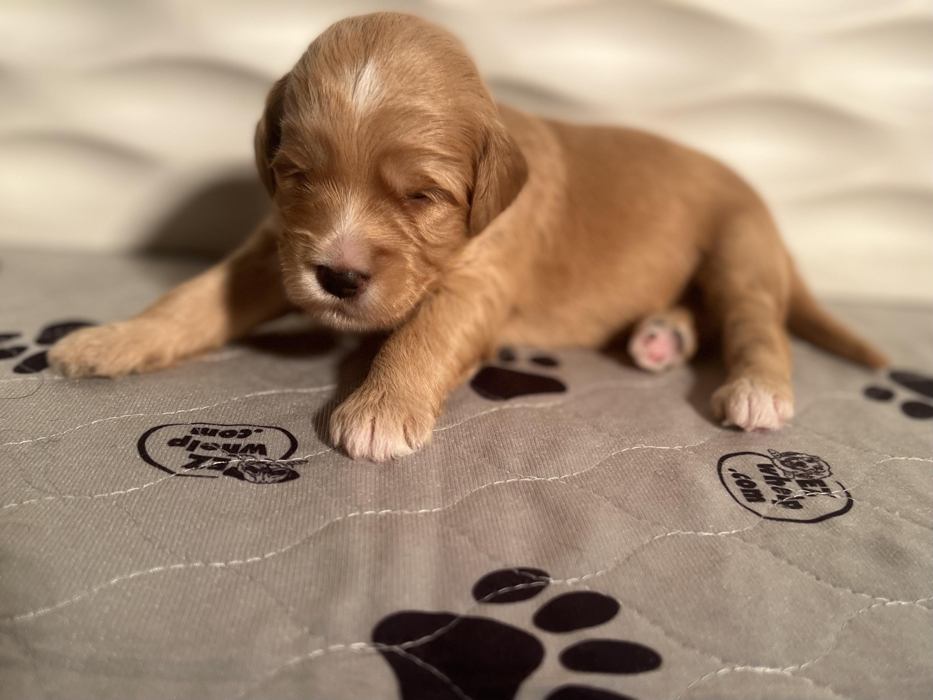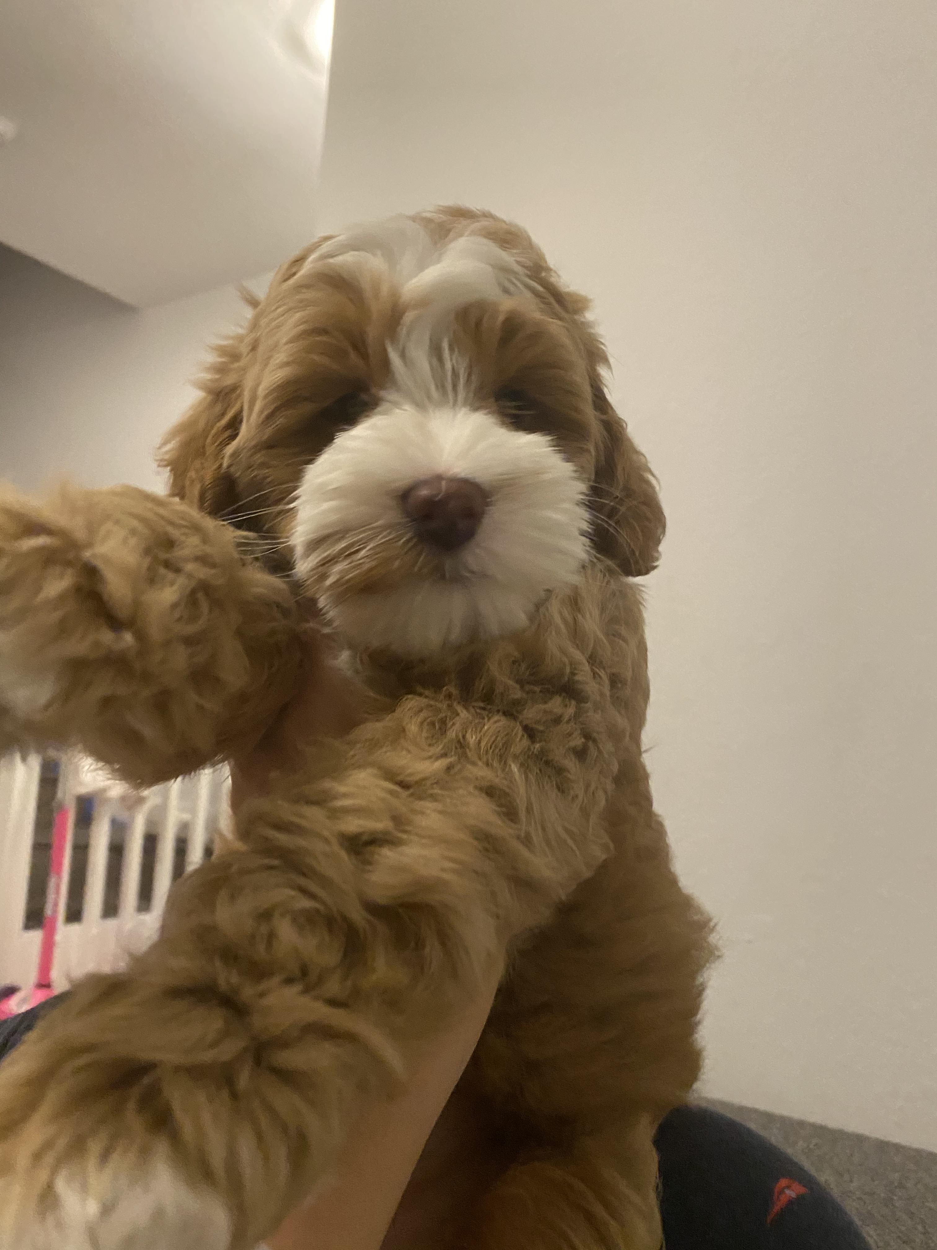 Happy is a female Australian Labradoodle. Carefully selected as a great representative of her breed, Nathali decided to make her part of their program. Nathali has passed Good Dog’s screening process, which involved a review of their breeding practices, environment, and the mental and physical health of their dogs.