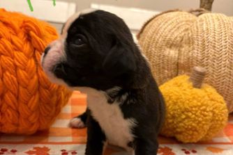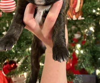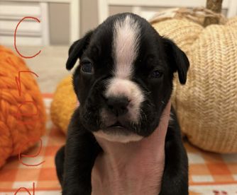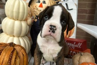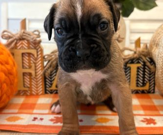 Our puppies include fawn and brindle. Colors will vary depending on the parent dogs.