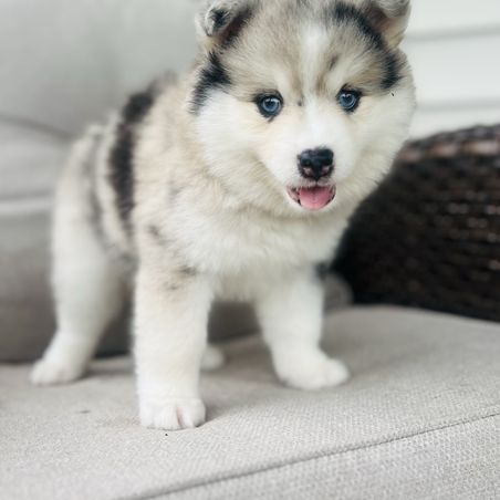 We love Pomskies! Our dogs have brought us so much joy and happiness that we wanted to give back to them by producing the highest quality dogs and providing them a wonderful life with wonderful families. We truly love our pups and know you will, too!