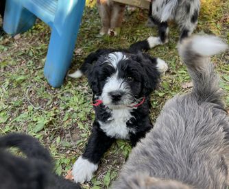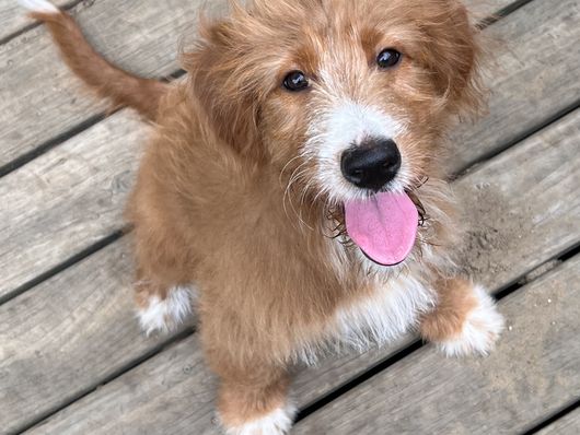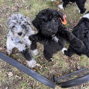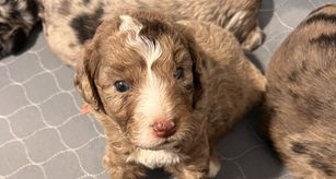 I'm Terri G., the breeder behind Happy Hippy Doodles located in Grand Haven, MI. We strive to produce amazing family pets, service dogs and emotional support dogs. Our puppies are raised in our home on a curriculum and are exposed to many different things to help produce happy, confident pups with strong nerve strength. We temperament test out pups to help match you with a puppy that will be a good fit for you. Our Aussiedoodles are insanely smart, eager to please, easy to train, and very human focused. They are Velcro dogs and with proper training, will be a joy to have in your life!